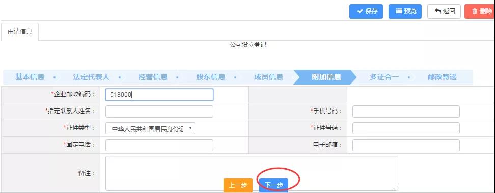 第十一步:根據(jù)準(zhǔn)備好的注冊資料,填寫企業(yè)信息。