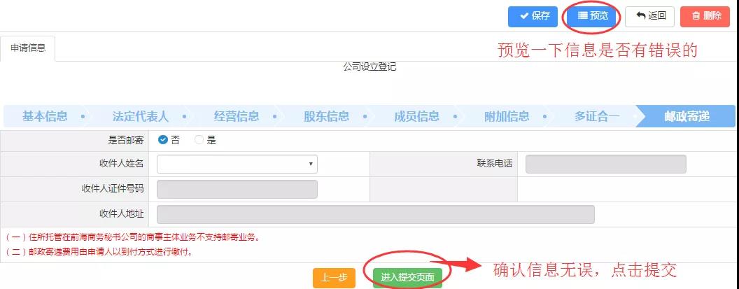第十八步:確認(rèn)信息 點(diǎn)擊“提交”,注意:可選擇郵寄到注冊地址。