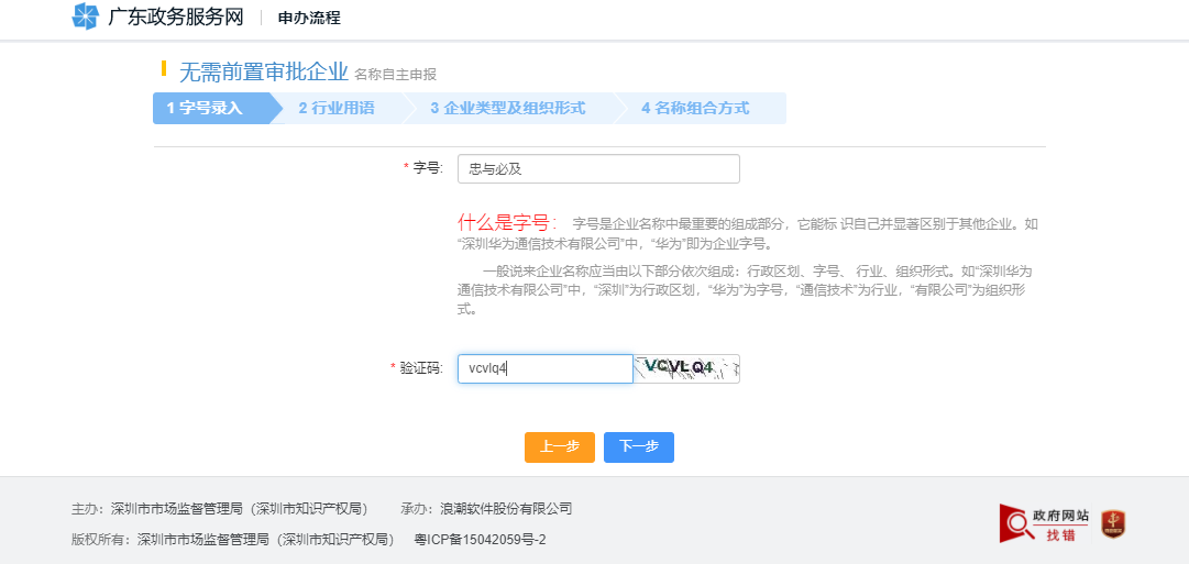 6、接下來才是正式核名環(huán)節(jié),將你準(zhǔn)備好的信息一次錄入。