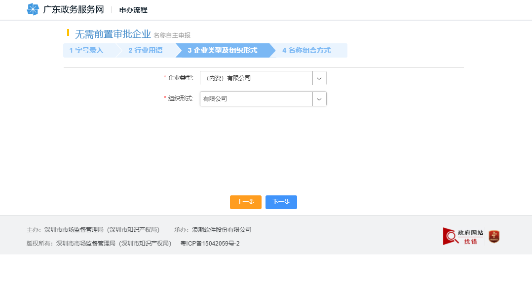 3、選擇一個自己要注冊的類型,核名都適用該流程。
