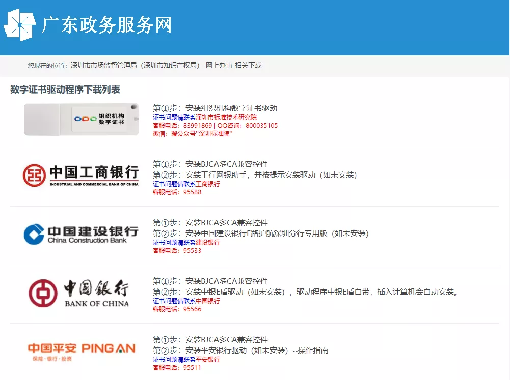 1、先去數(shù)字證書官網(wǎng)https://amr.sz.gov.cn/psout/jsp/gcloud/pubservice/network/downPageSimple.jsp下載并按照驅(qū)動(dòng)程序;