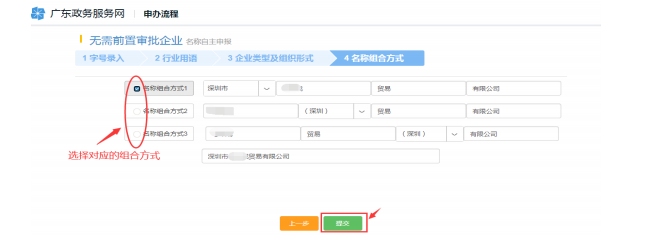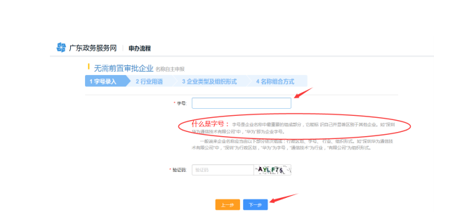 6、填寫字號、行業(yè)用語、企業(yè)類型及組織形式,然后選擇一個(gè)合適的公司名稱組成形式。
